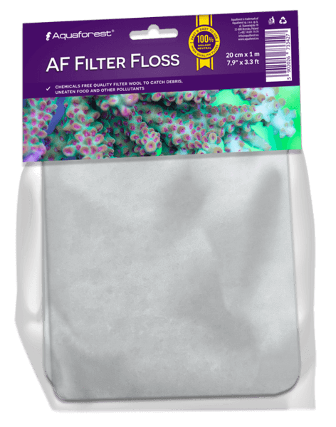 AF Filter Floss is efficient and easy to use. You can easily place it to any type of sump. The package includes a non-woven fabric with dimensions of 20 x 100 cm, which can be cut in any way to fit your filtration system. In order to maintain the highest efficiency of mechanical filtration, it is recommended to regularly replace the element as soon as you notice dirt and the resulting change in the color of the fabric. AF Filter Floss is made of materials safe for fish and corals. It doesn’t contain chemicals and doesn’t affect the water parameters.