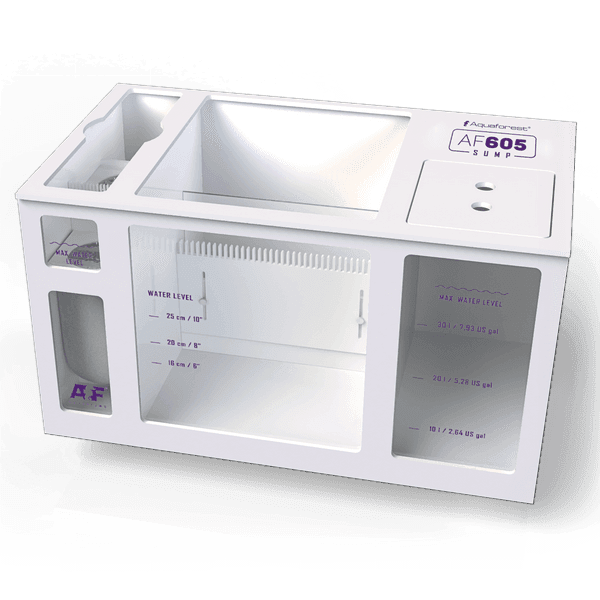 Highly durable PVC sump dedicated even for the most demanding aquariums. These designed by experienced aquarists sump ensures the most efficient filtration to make corals thrive and grow healthily. Cascading chambers combined with quality combs provide perfect conditions for dynamic, but still ultra silent water-flow. Filtration socks chamber allows placing two socks (included in set) with noise suppressing caps or replacing them with media reactors. Aquaforest sump is an outcome of experience and best designers & engineers close cooperation with top aquarists. This smartly designed system of dividers and baffles was thoroughly tested for years in order to ensure that it delivers the highest filtration potential. Having in mind that efficient filtration system is the key to a reefing success, each detail was carefully considered and thoughtfully designed. We strive to deliver the highest quality on every stage of reefing, so we made sure, that our complex of combs and chambers provides optimal noise cancellation by fading out unwanted sounds. Precise welding of elements guarantees the highest tightness. The most reliable combination of aquarist experience, advanced technology and the finest workmanship available in the market!