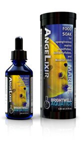 It has been our experience that natural foods, such as krill, mysis, and brine shrimp (thoroughly rinsed if frozen) are generally more readily accepted by newly introduced fishes than are most prepared foods, presumably due to familiar chemical and visual cues associated with natural prey items (as opposed to the relative unfamiliarity of prepared foods). If a fish has spent sufficient time in a retailer’s system to become acclimated to feeding on specific types of foods, it is wise to purchase and feed the same foods to increase the chances that the fish will begin eating shortly after introduction to its’ new surroundings. AngeLixir may be used to enhance the nutritional value of, and feeding response to, these foods.