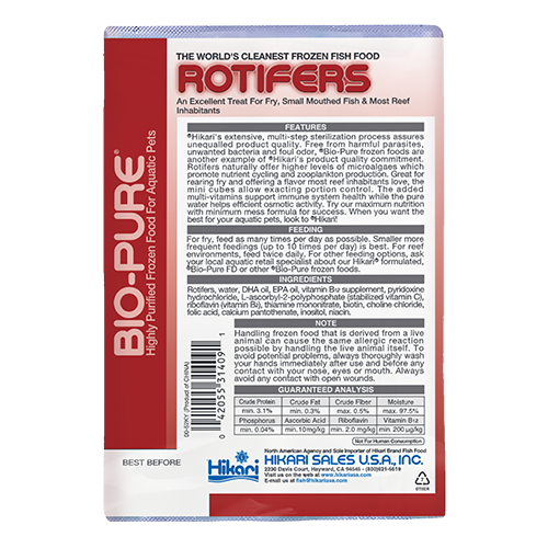 - A combination of vitamins and live rotifer frozen during their ideal nutritional period you cannot duplicate at home