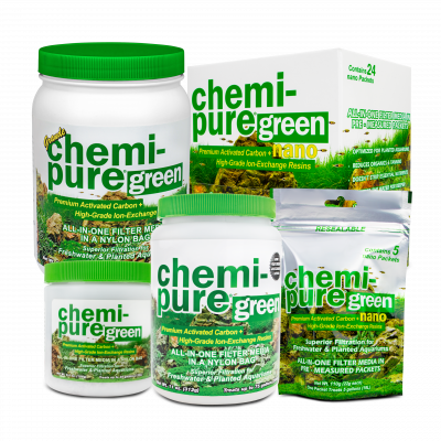 Chemi-pure Green is the ultimate all-in-one filtration media for freshwater planted aquariums. Conveniently packaged in an easy to use nylon bag, Chemi-pure Green is formulated to offer superior filtration without removing essential nutrients. Chemi-pure Green combines the highest grade of low dust pelletized activated carbon with premium ion exchange resins to produce a balanced formula optimized for the health and well-being of your plants while delivering crystal clear water.