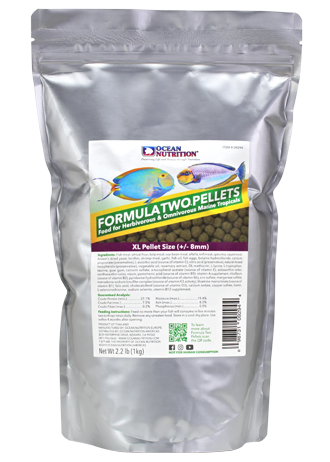 Ocean Nutrition Formula Two™ Pellets are a soft and moist slow-sinking food formulated using fresh seafood, spirulina (blue-green algae), kelp, and garlic. This blend of ingredients results in a food with an appropriate protein content for all herbivorous (plant-eating) and omnivorous (plant and meat-eating) marine tropical fish. They provide daily nutrition, support color, and promote growth. The inclusion of garlic creates an appealing flavor that even the most finicky fish cannot resist. These pellets are ideal for herbivorous fish because the soft and moist nature makes them highly palatable and easy to digest. Fish that eat Formula Two Pellets produce less waste in your aquarium. Reward your fish with the food they deserve and feed them Ocean Nutrition!
