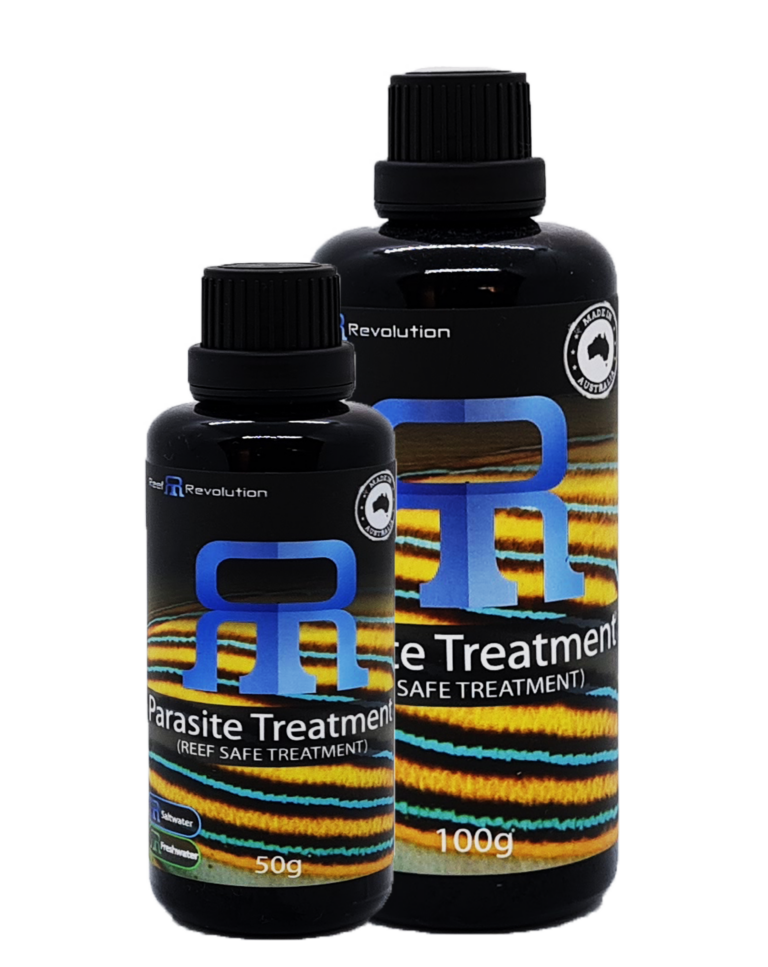 Reef Revolution’s reef safe parasite treatment is a highly effective reef safe method for treating fish parasites such as Marine Ich (Cryptocaryon Irritants), Freshwater Ich (Ichthyophthirius) and Marine Velvet (Amyloodinium Ocellatum). Use as directed for best results.