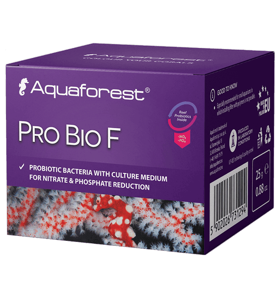 Product contains a unique composition of freeze-dried probiotic bacteria and nourishment to facilitate their multiplication. Pro Bio F is especially recommended for small aquariums in which installing a filter with polymers is not possible or it is much more difficult. It can replace the administration of VSV or other carbon sources. The unique composition of specially selected strains of probiotic bacteria has been developed to accelerate the decomposition of organic matter. It improves clarity of water and promotes cleaning the substrate. The use of Pro Bio F reduces the amount of nitrate to an undetectable level, providing the coral with perfectly balanced living conditions and excellent colouring.