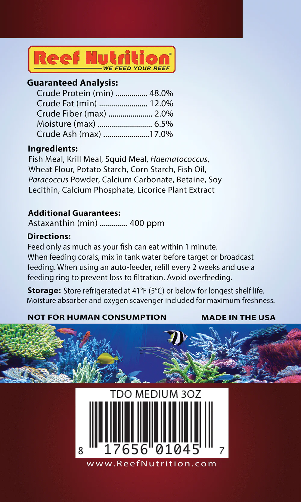 TDO™ Chroma Boost is a granulated and pelleted fish and coral feed “top-dressed” with Haematococcus (which provides an excellent source of astaxanthin) for vibrant color and superior nutrition.