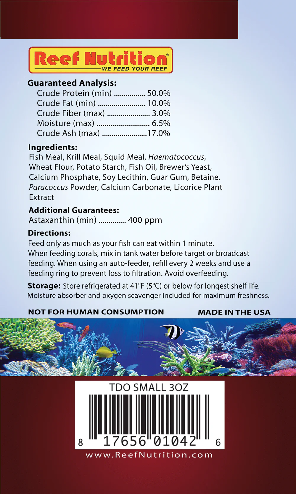 Recently, the Virginia Tech Agricultural Research Center did a study on the effects on clownfish coloration with different levels of astaxanthin top-dressing of TDO which led us to optimize our TDO with 400ppm astaxanthin for the reddest reds and whitest white™