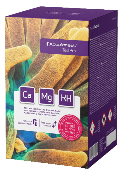 - Aquaforest TestPro Magnesium is designed to quickly measure the concentration of Magnesium (Mg) in marine water. Magnesium plays an important role in many biological processes, e.g. takes part in the construction of hard coral’s calcium carbonate skeleton. Due to its unique chemical properties it has significant impact on seawater buffering capacity, and also prevents excessive precipitation of calcium carbonate on aquarium equipment. Adequate level of Magnesium is crucial in maintaining proper Calcium and Alkalinity balance in reef aquaria. Mg levels should be analysed regularly, together with other critical water parameters like Calcium and Alkalinity. The concentration of Magnesium in natural seawater is between 1260-1460 mg/l (ppm). Test Kit contains sufficient reagents to perform approx. 55-60 separate tests within that range.